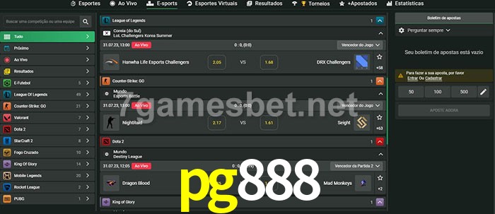 O pg888 oferece uma grande seleção de opções de apostas em e-sports com probabilidades competitivas